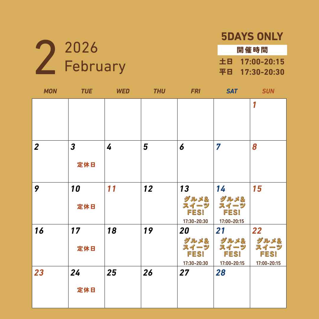 2/13(金)・2/14(土)・2/20(金)・2/21(土)・2/22(日)